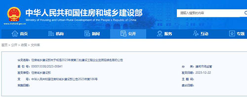 12月26日,住建部官网公布了关于核准2023年第二批建设工程企业资质延续名单的公告,本批次共有15154家建企通过。