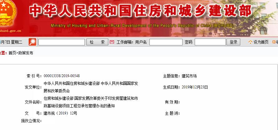 近日住建部、发展改革委联发印发了《房屋建筑和市政基础设施项目工程总承包管理办法》。历经两年时间、两次征求意见,终于正式出台了。自2020年3月1日起施行。